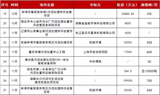 2018年部分汙泥項目一覽: